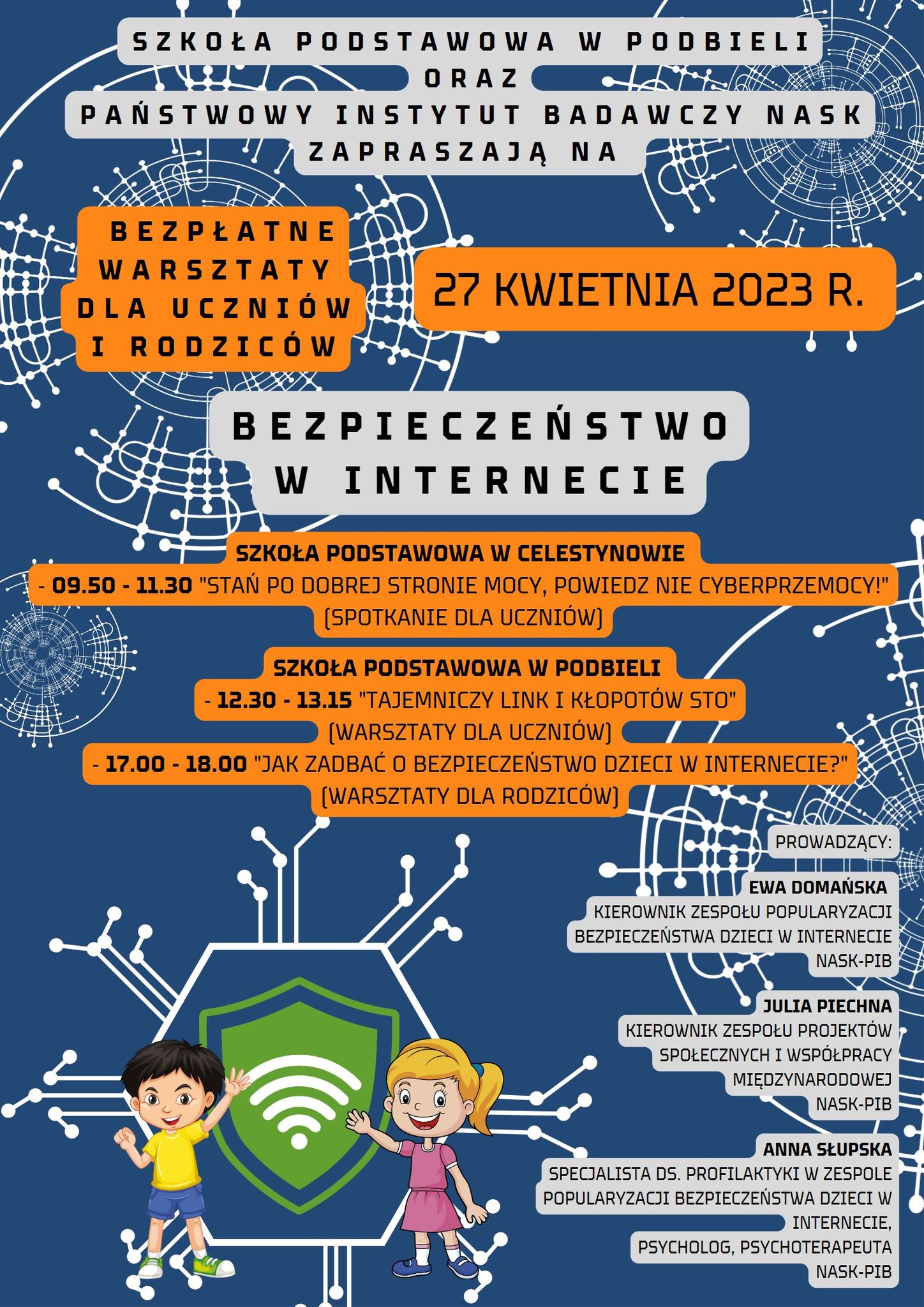 w Szkole Podstawowej w Celestynowie oraz w Szkole Podstawowej w Podbieli. Poruszyły m. in. aspekty dot. zamieszczania i ochrony danych osobowych, hejtu i przemocy w sieci, a najmłodszym przybliżyły tematykę wirusów komputerowych.